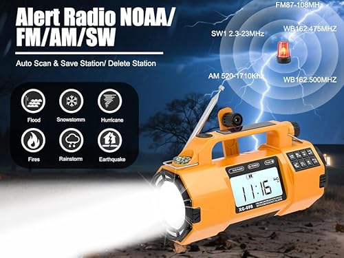 Hand Crank Emergency Radio with NOAA Weather Alert, Replaceable Battery, Rechargeable Portable Solar SW/AM/FM Radio, Clock SOS Alarm & Flashlight Headphone Jack Emergencies