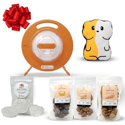 Happy Habitats Halo Starter Bundle – Portable Pet Carrier, Carrot, Banana, and Peanut Butter, Natural Treats, Happy Enrichment Bedding & Pin + Plushie – Hamster Starter Kit for Pet Care