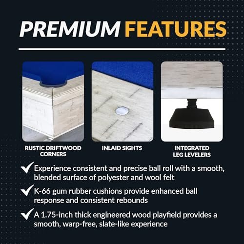 Hathaway Montecito 8 Ft Furniture Pool Table – Includes Cue Sticks, Billiard Balls – Modern Design Perfect for Family, Home, Dining, or Living Room – Blue Felt with Driftwood Finish