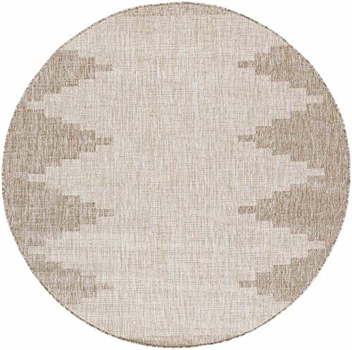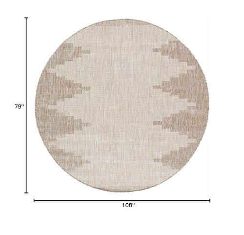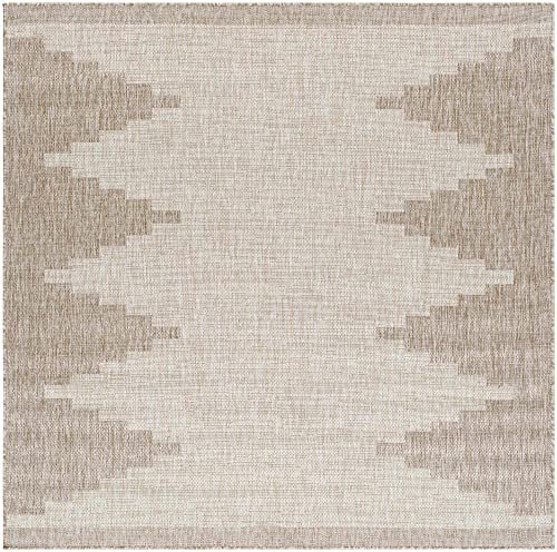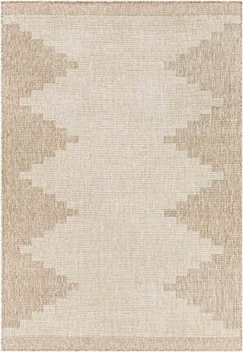 Hauteloom Deneysville Living Room, Bedroom Patio Outdoor Area Rug – Bohemian, Transitional – Beige, Dark Brown, Medium Gray – 6’7″ x 9′