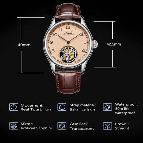 HEMUDU Real Flying Tourbillon Movement Mechanical Skeleton Sapphire Waterproof Stainless Luxury Watch