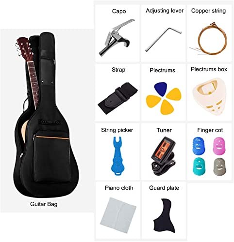 HMMMAVVZP Full Size Guitar Veneer 41 Inches 6 String Adjustable Chord Pitch Right Hand Portable Student Men Women Wooden Guitar Beginner Acoustic Guitar Starter Package Student G (Orange 41inches)