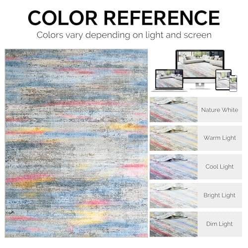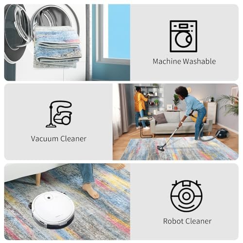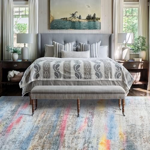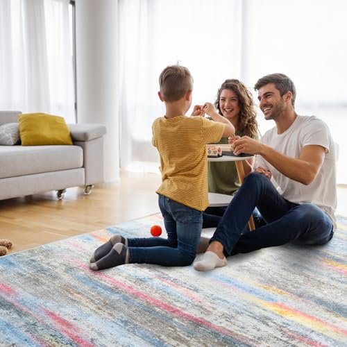 HOMBYS 9×12 ft Modern Area Rug for Living Room Bedroom, Large Boho Floor Carpet with Non-Slip Backing for Indoor Office Dining Room, Abstract Home Deco Non-Shedding, Machine Washable