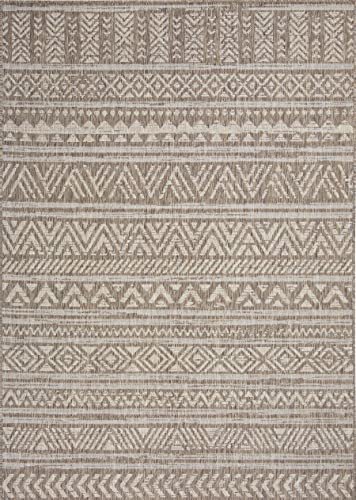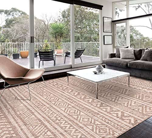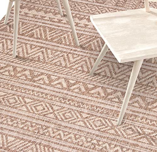 HOMEGNOME Indoor Outdoor Distressed Bohemian Area Rug (8’x10′, Natural Neutral) (Stain Resistant, Water Resistant, Easy to Clean, Washable, Suitable for Patio, Balcony, Living Room, Kitchen, Bedroom)