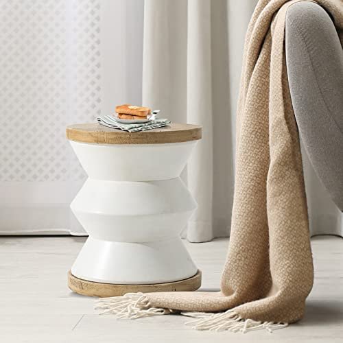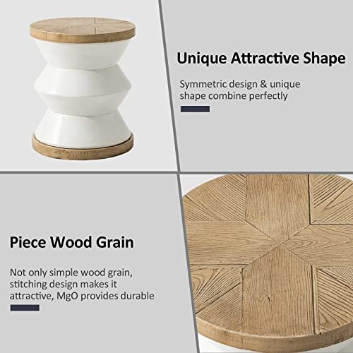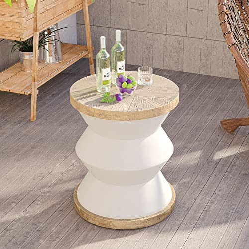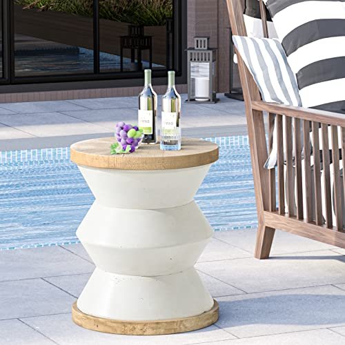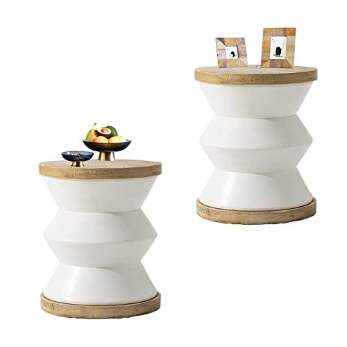 HOMPUS Unique Outdoor Concrete Side Table Set of 2, Modern Vintage MgO Patio End Table Set, 2 Piece Lightweight Functional Small Accent Table for Indoor Outdoor Use, Garden, Deck, Poolside