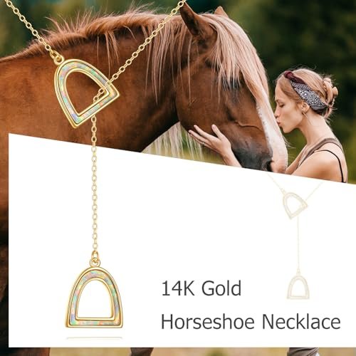 Horseshoe Necklace 14K Yellow Gold Horseshoe Horse Jewelry Gifts for Women Horse Lovers