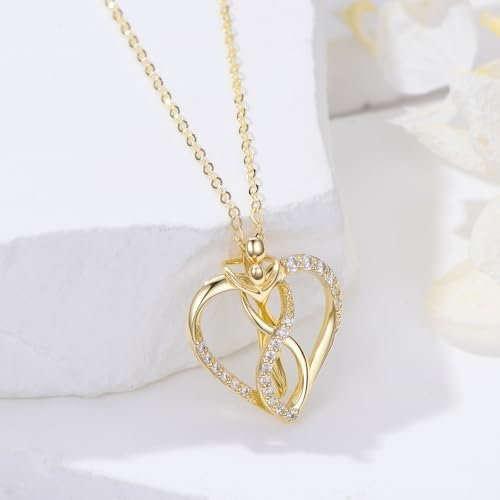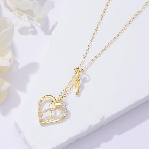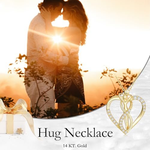 Hug Necklace 14K Solid Gold Couple Pendant Love Necklace 14 Carat Gold Couple Jewelry Hug Gifts for Women