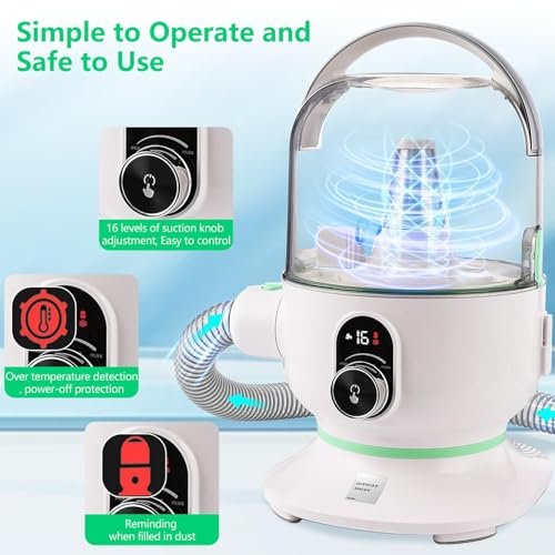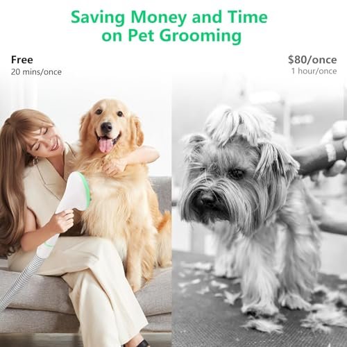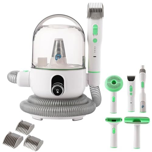 Huloretions Dog Grooming Vacuum Kit, 5-in-1 Pet Grooming Kit with 2.0L Dust Cup for Shedding Dogs/Cats, Low Noise Hair Remover for Home Cleaning, White & Green