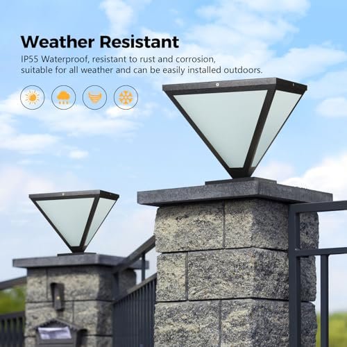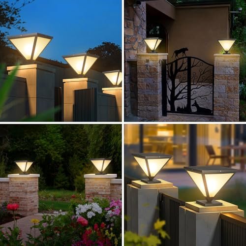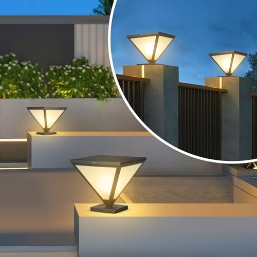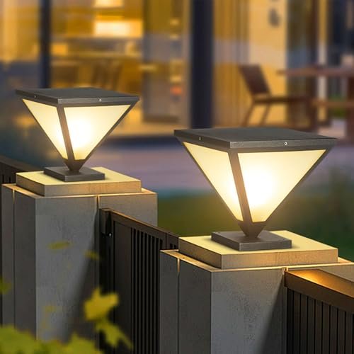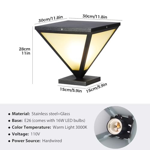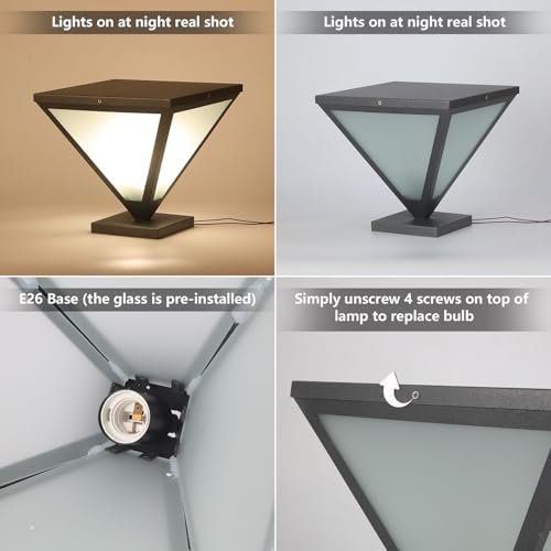 IBalody 2 Pack Outdoor Post Lights IP55 Waterproof Hardwired Column Lamp Modern LED Fence Deck Cap Light Pillar Lamps for Flat Surface Patio Garden Villa Porch Decoration with E26 Bulb