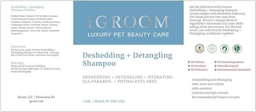 iGroom Deshedding & Detangling Dog Shampoo, Luxury Pet Beauty Care, Loosen Tangles + Unwanted Undercoat, Adds Shine + Volume, Made in USA (1 GAL)