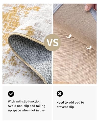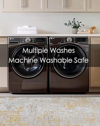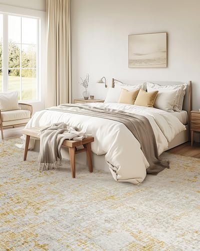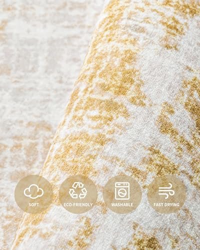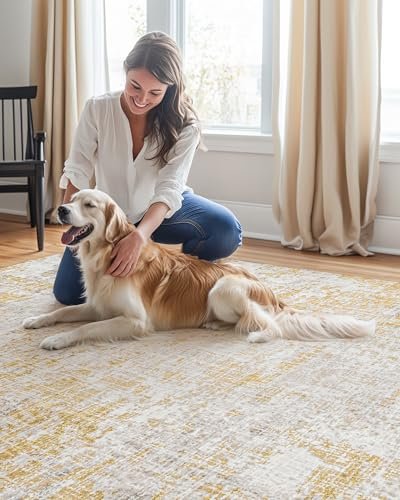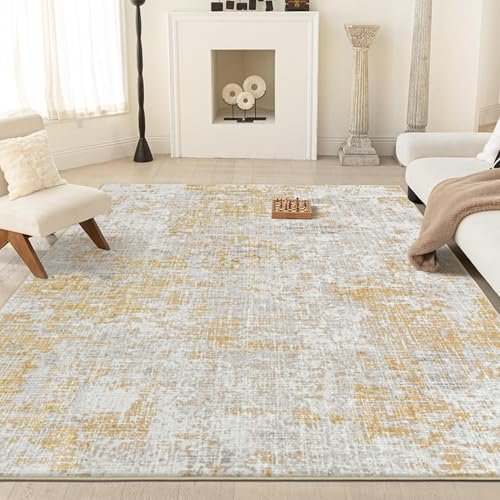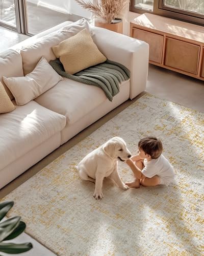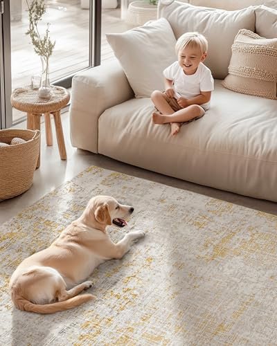 ILANGO Area Rug 8×10 ft for Living Room Bedroom Machine Washable Rugs with Non Slip Backing High Traffic Indoor Carpet for Dining Room Dorm Non-Shedding & Fade Resistant Modern Rugs (Golden)