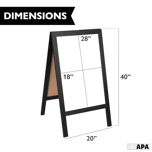Ilyapa Wooden A-Frame Whiteboard Sign – 40 x 20 inch Magnetic Dry Erase Sidewalk Menu Board – Black Menu Display for Restaurant, Business, Trade Show