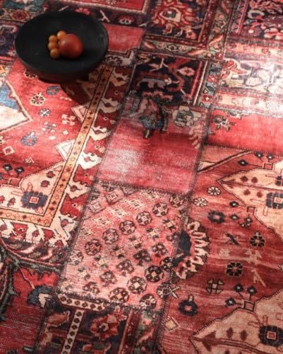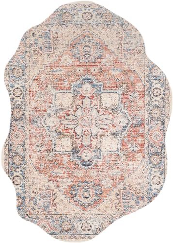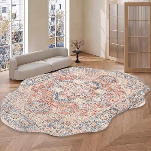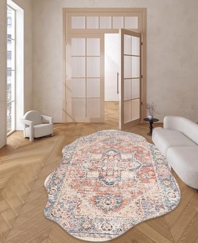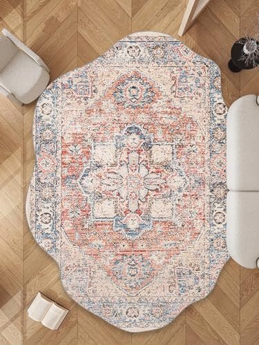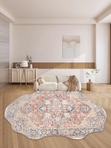 Irregular Shape Washable Rug 6×9 Oriental Vintage Area Rug for Living Room Bedroom Dining Room Kitchen Office Table Beige Blue Pink Carpet Unqiue Indoor Outdoor Throw Rugs