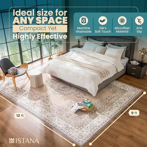 Istana Bedroom Rugs 9×12 – Beige Area Rugs – Foldable Big Rugs for Living Room – Stain Resistant 9 X 12 Rug – Eco-Friendly 9 X 12 Outdoor Rug – Easy to Clean Dining Room Rug 9×12