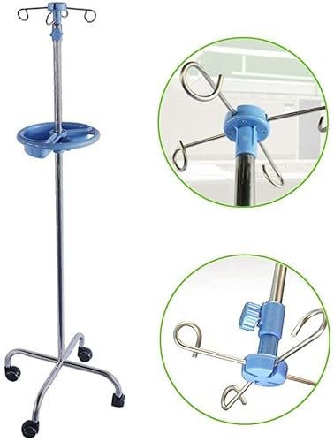IV Pole Medical Infusion Stand Portable IV Stand Portable IV Pole Drip Stand, Stainless Steel 4 Hooks for Hospital, Clinic, Pet Hospital, Family for Home Care,Hospital and Clinic