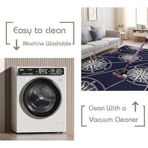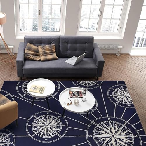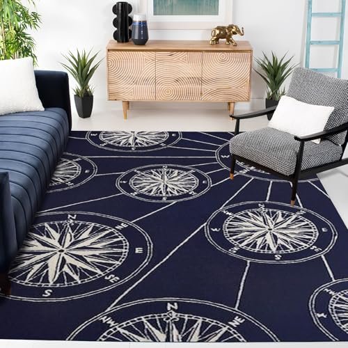 JEEGIU Pattern Printed Area Rug, 8x10ft/96x120in, Ivory & Navy, Non-Shedding Easy Care, Ideal for High Traffic Areas for Playroom, Livingroom, Bedroom