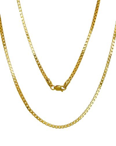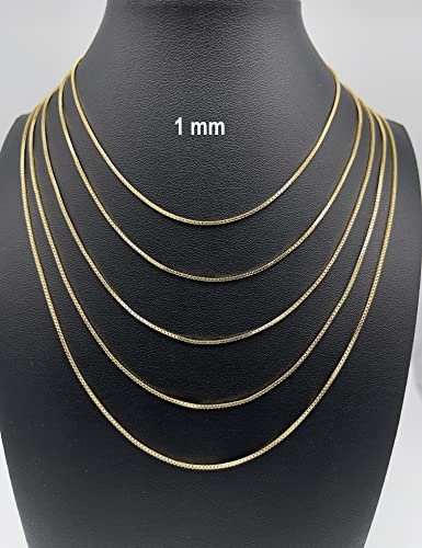 JEWELHEART 10K Real Gold Box Chain – 1mm Diamond Cut Yellow Gold Link Chain Necklace For Men – Dainty Gold Pendant Necklace For Women with Lobster Clasp 18″