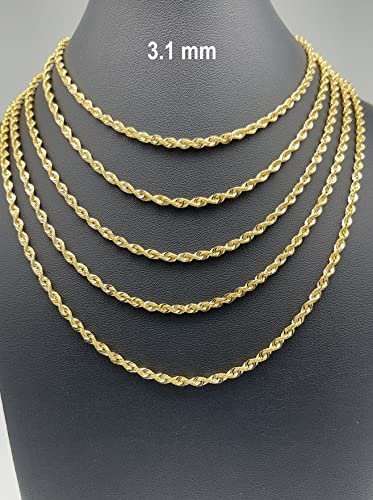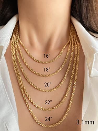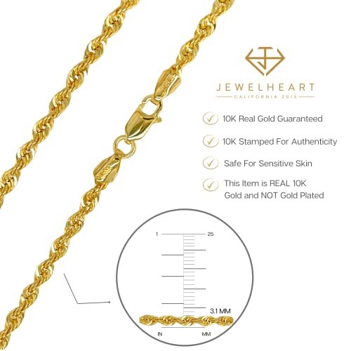JEWELHEART 10K Real Gold Rope Chain Necklace – 3.1mm Diamond Cut Twist Link Chain – Dainty Gold Pendant Necklace For Men and Women 16″