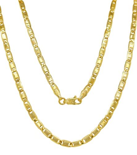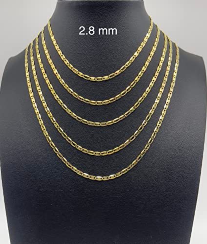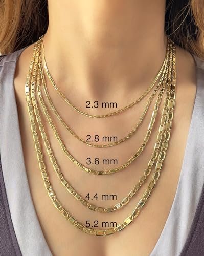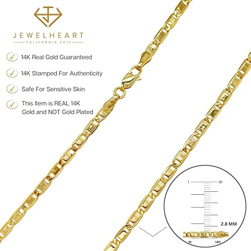 JEWELHEART 14K Gold Necklaces For Women Trendy 2.8mm Yellow Real Gold Valentino Mirror Chain Polished Links Men’s 14K Gold Chain Necklace with Lobster Clasp 16″