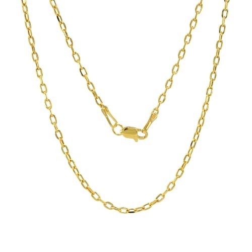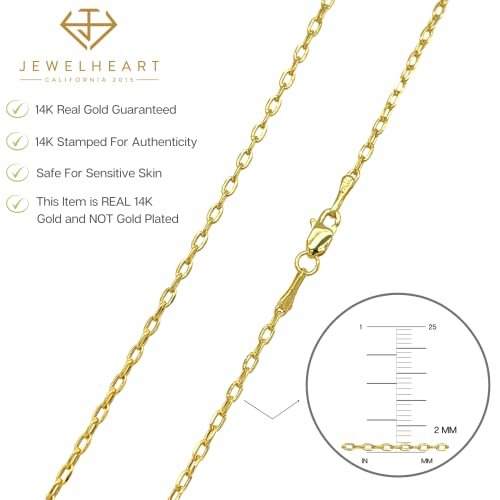 JEWELHEART 14K Real Gold Link Chain Necklace – 2mm Diamond Cut Cable Chain – Dainty 14K Yellow Gold Necklace For Women with Lobster Clasp 22″