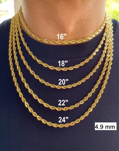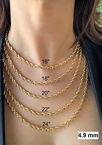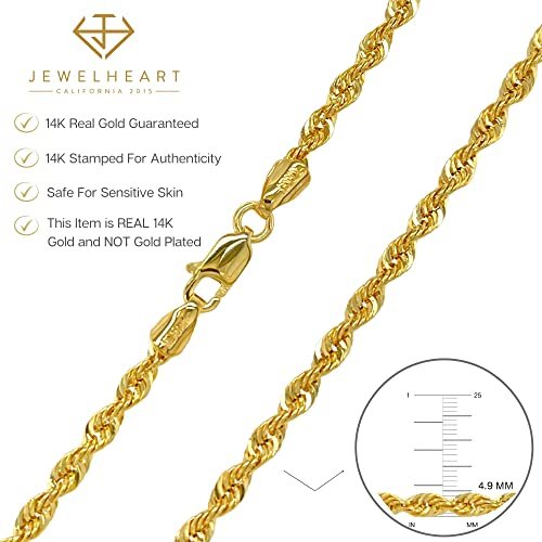 JEWELHEART 14K Real Gold Rope Chain Necklace – 4.9mm Diamond Cut Twist Link Chain For Men – Dainty Gold Pendant Necklace For Women 22″