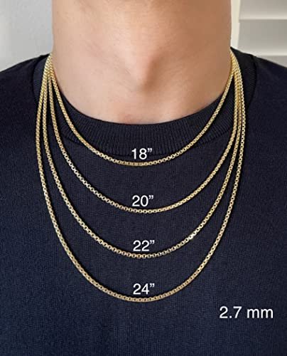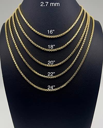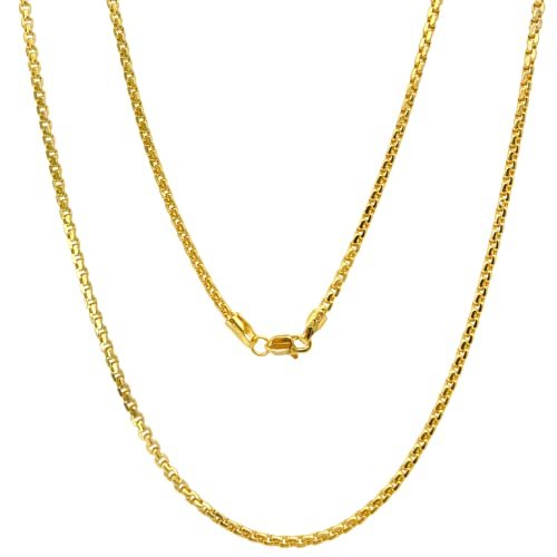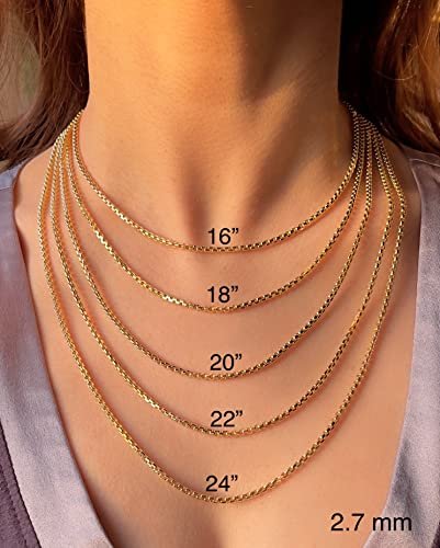 JEWELHEART 14K Real Gold Round Box Chain 2.7mm Yellow Real Gold Chains For Men Diamond Cut Link Chain Necklace For Women with Lobster Clasp 24″