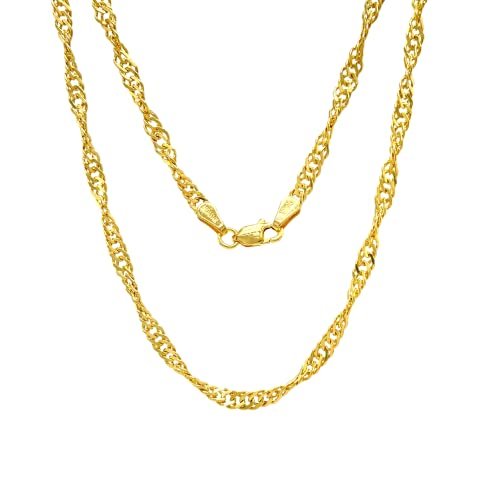 JEWELHEART 14K Real Gold Singapore Necklace – 2.45mm Diamond Cut Twisted Chain Necklace – Dainty Yellow Gold Chain For Women with Lobster Clasp 18″