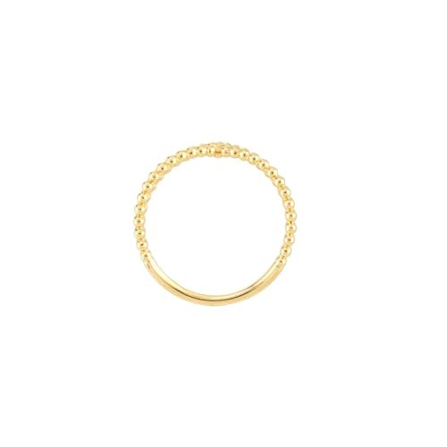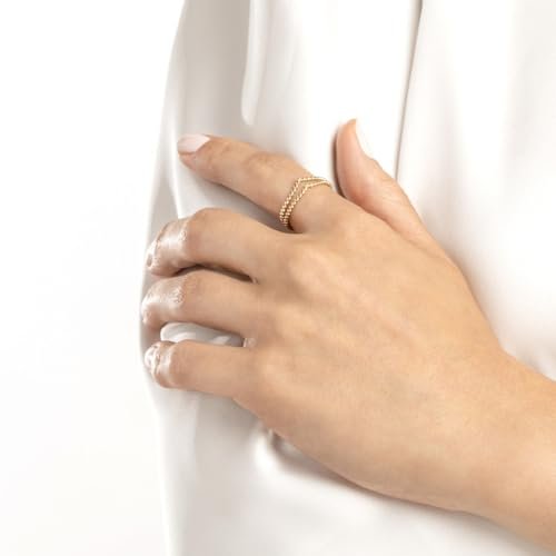JEWELHEART 14K Solid Gold Beaded V Ring – Dainty Double Beaded Chevron Ring – Minimalist 14K Yellow Real Gold Stackable Rings For Women Size 8