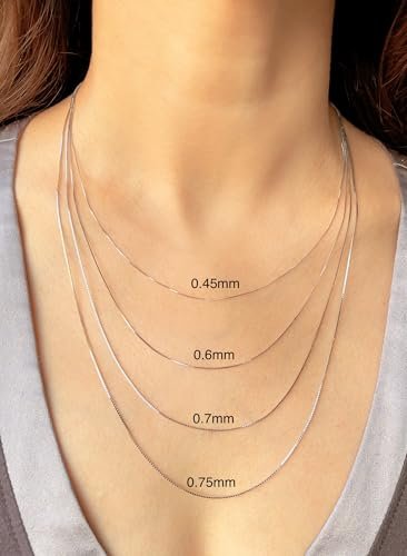 JEWELHEART 14K Solid Gold Box Chain – Dainty 0.75mm Thin Gold Chain Necklace For Women – Mirror Square Link White Real Gold Chain For Men with Lobster Clasp 24″