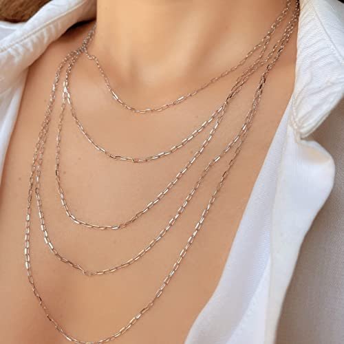 JEWELHEART 14K Solid Gold Cable Chain – 1.7mm Diamond Cut White Gold Thin Paperclip Link Chain Necklace For Women – Dainty Real Gold Pendant Necklace with Lobster Clasp 16″