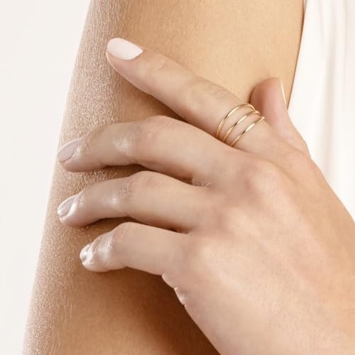 JEWELHEART 14K Solid Gold Triple Row Ring – Dainty Triple Domed Ring – Minimalist Delicate 14K Yellow Real Gold Stackable Rings For Women Size 8