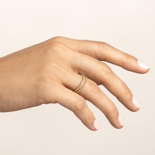 JEWELHEART 14K Solid Gold Two Row Ring – Delicate Double Beaded Ring – Dainty Minimalist 14K Yellow Real Gold Stackable Knuckle Rings For Women Size 8