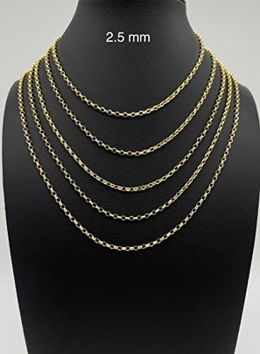 JEWELHEART 14K Yellow Real Gold Rolo Chain 2.5mm Diamond Cut Trendy Round Link Chain Pendant Necklace For Women with Lobster Clasp 16″