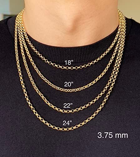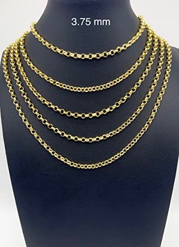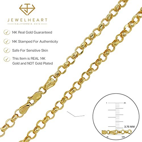 JEWELHEART 14K Yellow Real Gold Rolo Chain 3.75mm Diamond Cut Trendy Round Link Chain Pendant Necklace For Women with Lobster Clasp 24″