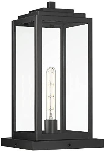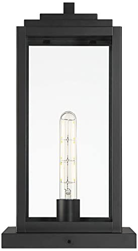 John Timberland Titan Modern Outdoor Pier Mount Light Matte Black 17″ Clear Glass Shade for Post Exterior Barn Deck House Porch Yard Patio Outside Garage Front Door