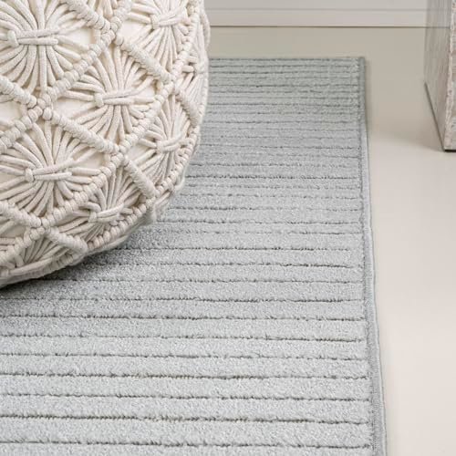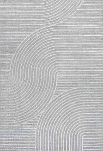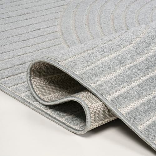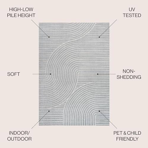 JONATHAN Y SCN100E-8 Hallie High-Low Minimalist Curve Geometric Light Blue/Cream 8 ft. x 10 ft. Indoor/Outdoor Area Rug for Patio, Backyard, Living Room, Bedroom, Office, Hose-Washable