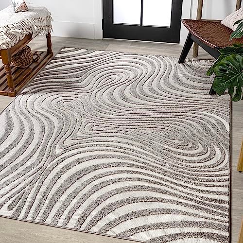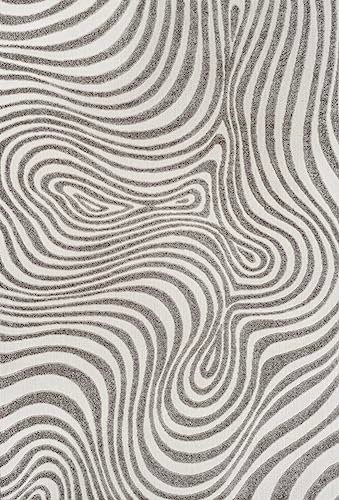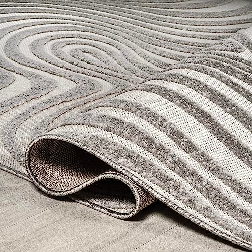 JONATHAN Y SCN103B-8 Maribo High-Low Abstract Groovy Striped Indoor/Outdoor Area Rug, Contemporary, Modern, Vintage, Bohemian for Bedroom,Kitchen,Living Room,Non Shedding,Easy-Washing, Gray, 8 X 10