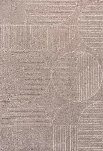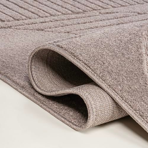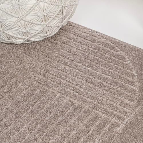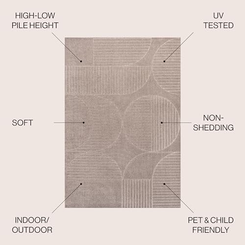 JONATHAN Y SCN104D-8 Nordby High-Low Geometric Arch Scandi Striped Taupe/Beige 8 ft. x 10 ft. Indoor/Outdoor Area Rug for Patio, Backyard, Living Room, Bedroom, Office, Hose-Washable