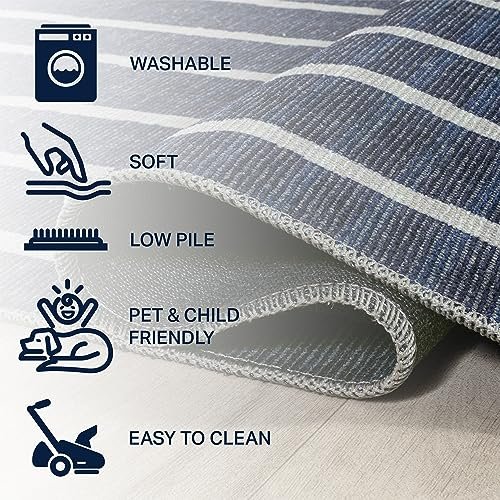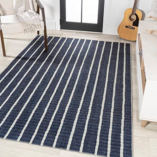 JONATHAN Y WSH119A-9 Rand Distressed Ticking Stripe Machine-Washable Indoor Area Rug, Farmhouse Nautical Rustic Easy Cleaning,Bedroom,Kitchen,Living Room,Non Shedding, Navy/Gray, 9 X 12