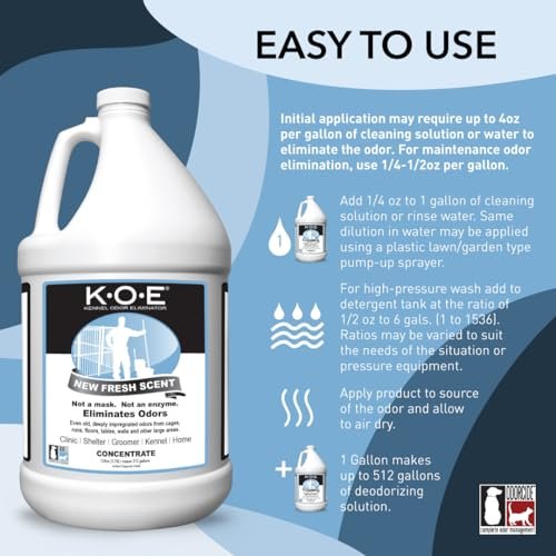 K.O.E. Fresh Scent Odor Eliminator Concentrate for Kennels, Cages, Floors & More – Non-Enzymatic Pet Odor Solution for Home & Dog Kennel – Home & Pet Supplies (1 Gal)