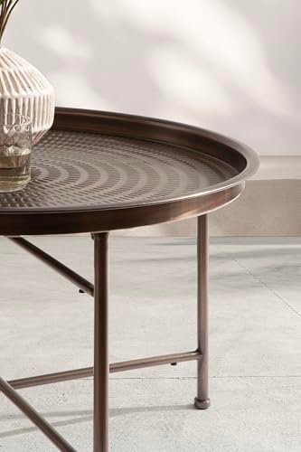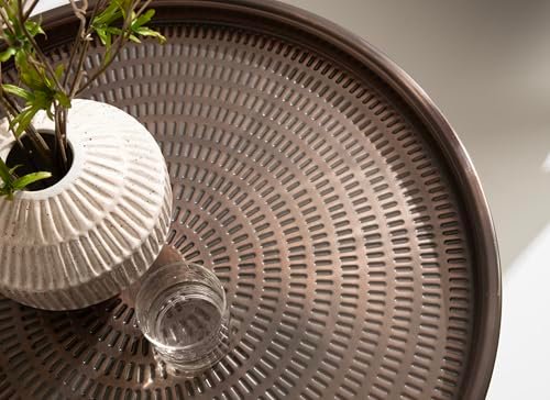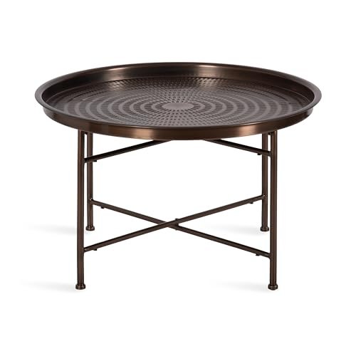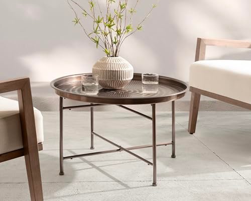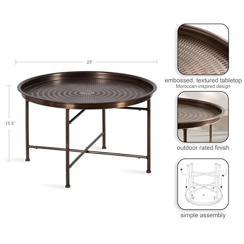 Kate and Laurel Mahdavi Modern Round Outdoor Coffee Table, 25 x 25 x 16, Bronze, Transitional Patio Coffee Table with Textured Top for Outdoor Furniture Decor