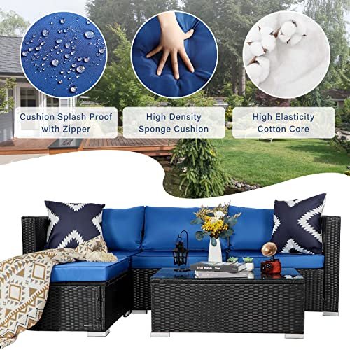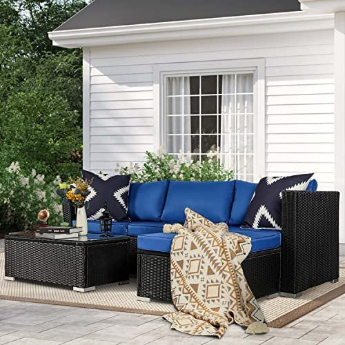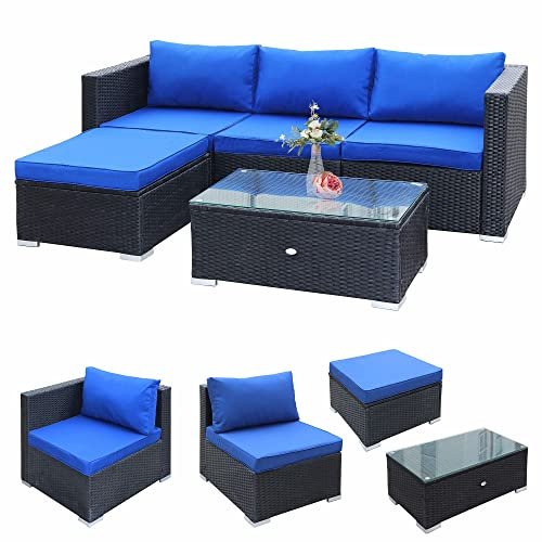KAWIVAST 5-Piece Modern Blue PE Rattan Patio Furniture Set, Outdoor Living Room Sets, Patio Furniture Sets