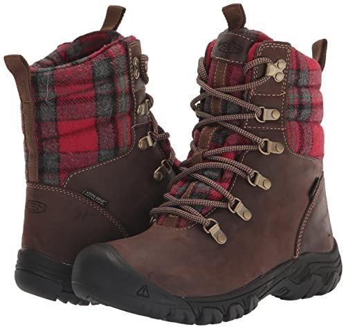 KEEN Women’s Greta Classic Waterproof Snow Boots, Dark Brown/Red Plaid, 10