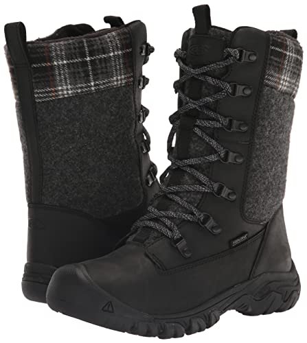 KEEN Women’s Greta Tall Classic Waterproof Snow Boot, Black/Black Plaid, 5.5
