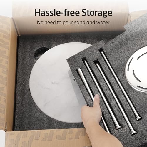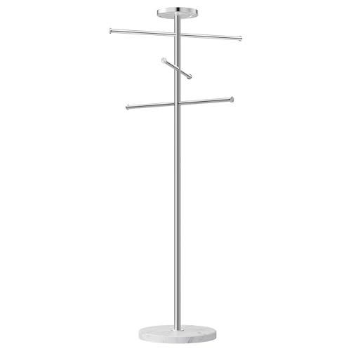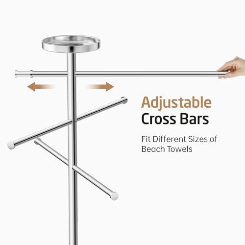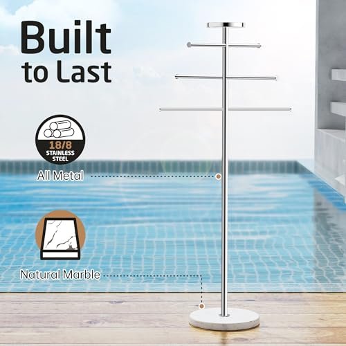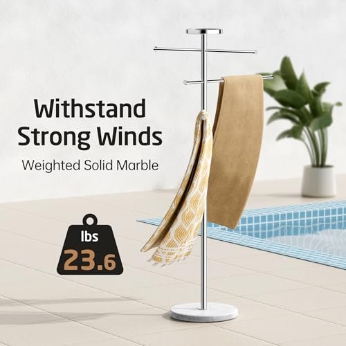 KES Outdoor Towel Tack for Hot Tub, Pool Towel Rack Outdoor with Natural Marble Base 59″ H 18/8 Stainless Steel Adjustable 3 Arms with Storage Tray, Polished Finish, OTR200