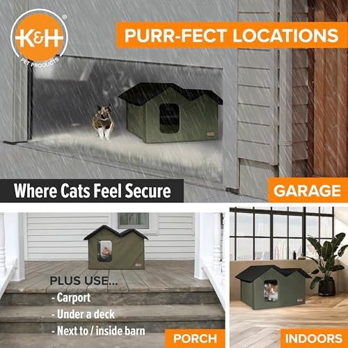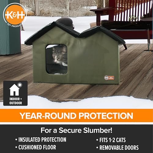 K&H Pet Products Extra-Wide Outdoor Cat House for Outside Pets, Weatherproof Outdoor House for Large Cats, Insulated Kitty Shelter, 2 Doors, Waterproof Removable Floor Pad, Unheated – Olive