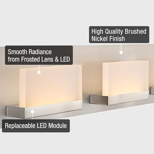 Kira Home Everett 48″ Modern 6-Light 60W Integrated LED (360W eq.) Bathroom/Vanity Light, Acrylic Lenses, Energy Efficient, Eco-Friendly, 3000k Warm White Light, Brushed Nickel, Pack of 2