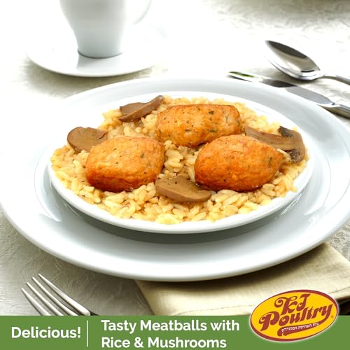 KJ Poultry Kosher Ready Meals – Chicken Meat Balls & Mushrooms, MRE Meat Meals Ready to Eat, Halal, (12 Pack) Prepared Entree Fully Cooked, Shelf Stable Microwave Dinner, Travel, Military, Camping