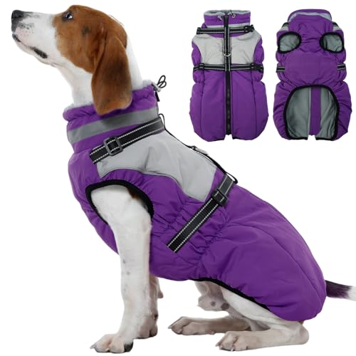 Kuoser Dog Coat, 2 in 1 Dog Jacket with Harness Built in, Winter Waterproof Puppy Puffer Jacket Snowsuit for Small Medium Large Dogs, Cold Weather Reflective Pet Fleece Vest with Zipper