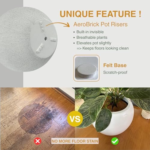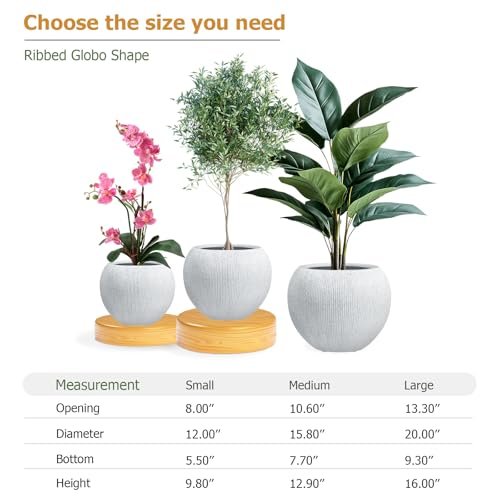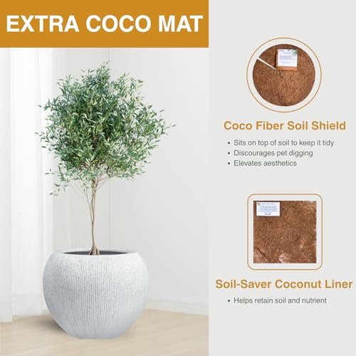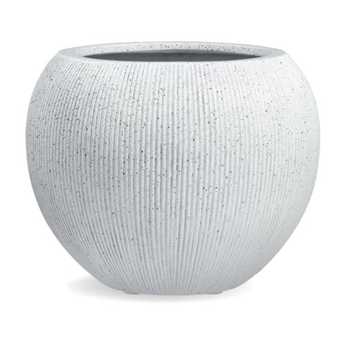 KUTE NEST Ribbed Globo 16″ H x 20″ D Fiberstone Premium Large Tree Pot, Planter Pot with Drainage Hole, Planters for Indoor and Outdoor Use (Speckled White)
